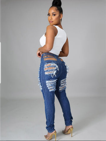 DISTRESSED DENIM JEANS