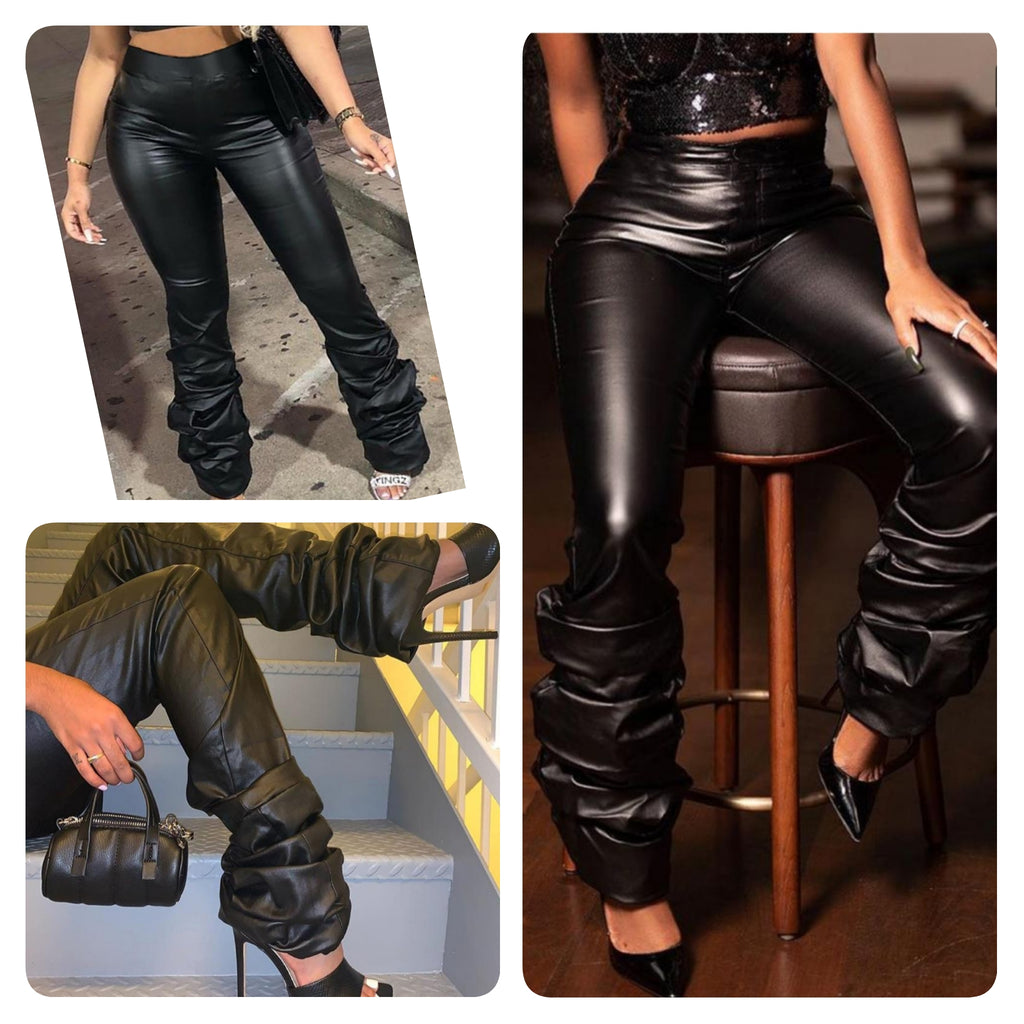 SLIM THICC FLARED FAUX LEATHER PANTS