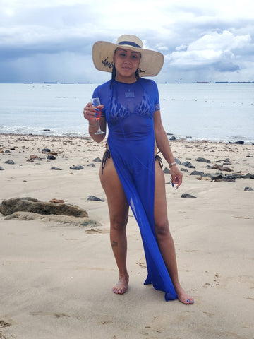 Stretchy sexy long mesh maxi dress comfortable to wear. Splits on both sides. Perfect for your next beach vacation.