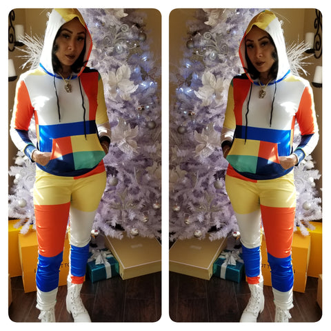 Long Sleeve Pullover Hoodie Tops with Pockets + Elastic Waist Pants Set.