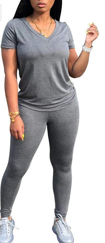 The basic 2 piece outfit is soft, high stretchy, and sexy too. Styled with a deep v neck detail.