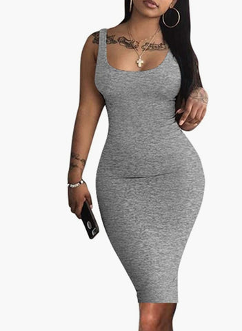 Tank top knee length dress with racer back. Comfortable stretchy fabric.