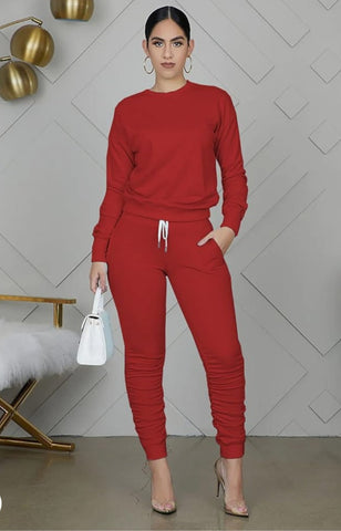 Ruched design on sleeves and trouser legs makes women 2 piece outfit cute, fashionable and stylish.Drawstring elastic waist helps you to have a comfortable fit.