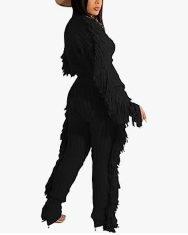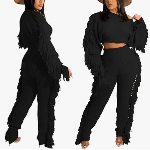 Stylish 2 piece fringe set for women outfit. Soft and warm knitted fabric, stretchy, comfortable touch feeling.