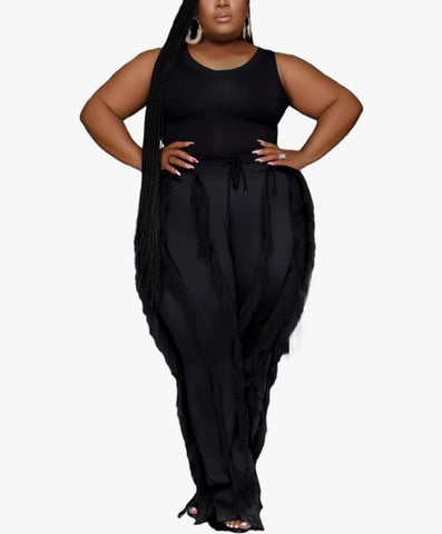 Plus Size two piece outfits fringe long pants.