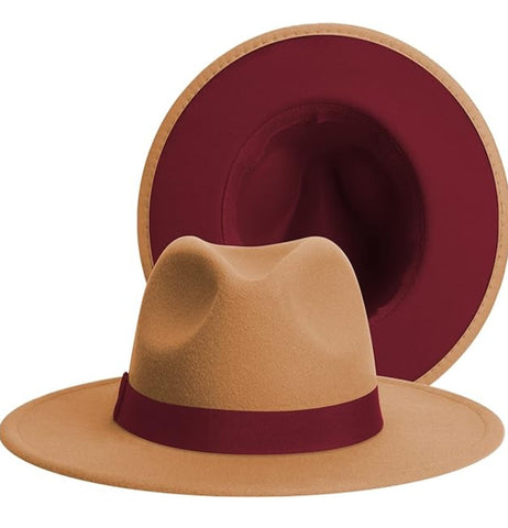Two-Tone Snazzy Wide Brim Elegant style definitely a show stopper. Wine Patchwork