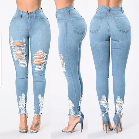 Middle rise waist, ripped denim jeans. Designed with Butt Lifting patterns that shape and enhance your figure with the perfect fit, enhancing every curve.