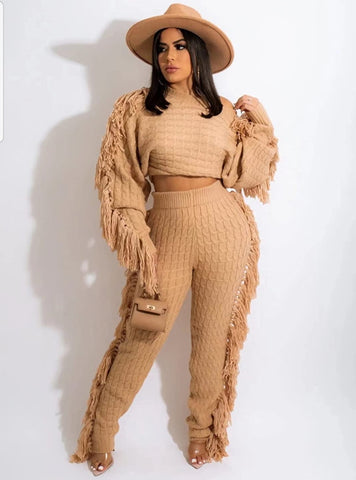 Give It To Em' 2 Piece Fringe Set- Apricot
