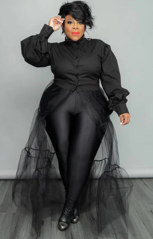 Sexy long sheer mesh dress top with long sleeves, Shirt collar with button closure. Can be paired with shorts, pants or leggings.