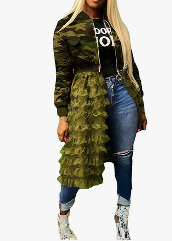 Comfortable & Stylish jacket! Long Sleeve, Zipper up, Splice Sheer Mesh Skirt, Dressing the new jacket dress style for any easy and chic choice.