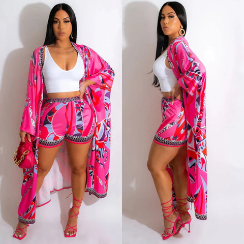 For a casual beach vacation look this Kimono Set is so flowy and can be paired with a tank top, or cami. The pattern is vibrant and trendy