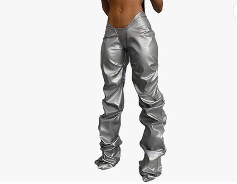 These Sexy Hipster Metallic Pants will hug your figure in all the right places. Faux PU Leather V Waist Stacked Trousers. Has stretch