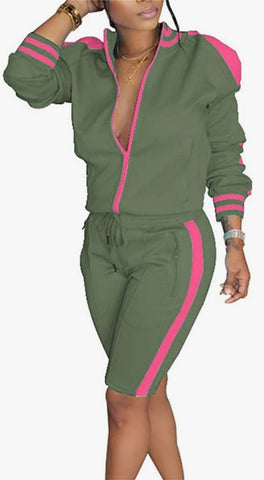 2 piece outfits , Casual sweatsuit, Jacket top with cutout shoulders+ shorts joggers