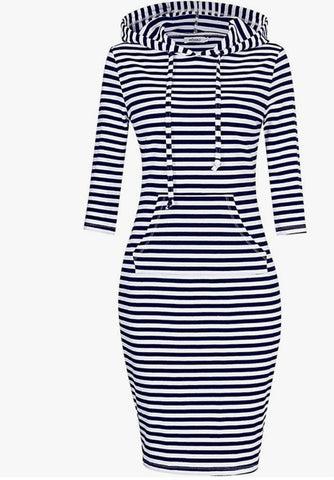 Cute and Comfy Casual 3/4th length Sleeve Pullover Hoodie dress. Knee Length complete with pockets. Pair this cutie with sneakers or sandals.