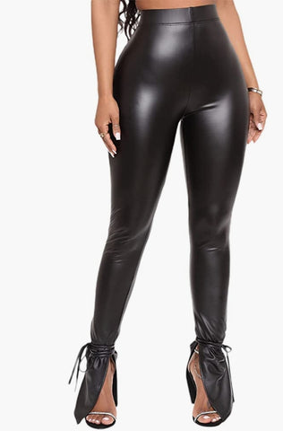 Solid color, sexy slit design, high waist, full length, stretchy with slim fit, butt lift, contours your curves and streamlines your shape. You can pair these trendy leather pants with just about anything in your closet, such as crop tops,T-shirts, jackets, hoodies, high heels and sneakers.