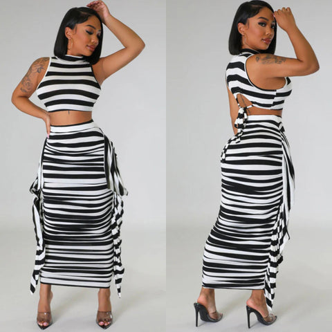 Slay this sexy 2piece tassel set backless crop top and high waist skirt. Summer vibes in full effect. Plan your next Vaca and bring this cutie along.