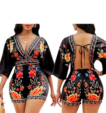 Super Cute Short-sleeved romper with a cutout design on the back. Perfect wear for Travel, Beach and all outdoor activities.