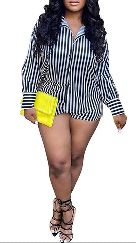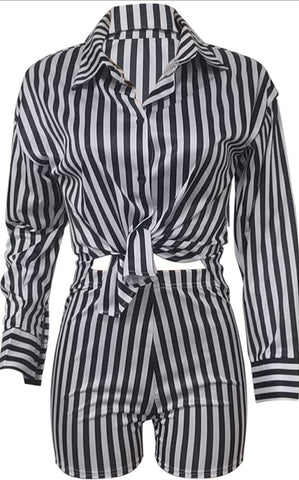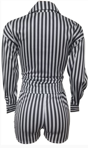 2 piece Striped Short Set, long sleeve button down top with high elastic waist shorts. Perfect fit for a Date Night, Vacation or Dinner.